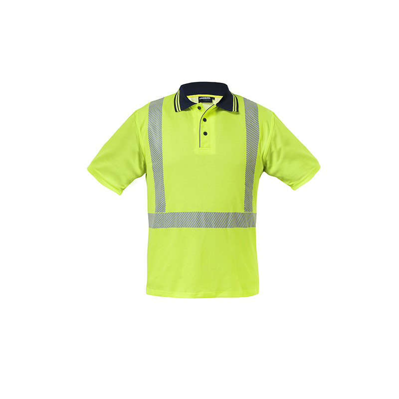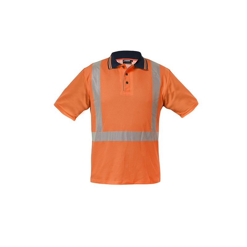 COTONE A CONTATTO CON LA PELLE Polo alta visibilità con collo con profilo di colore a contrasto chiuso con tre bottoni, profilo rifrangente sul bordo dell’abbottonatura. Strisce rifrangenti anteriori e posteriori stampate a transfer con pattern diagonale per conferire il massimo comfort a chi la indossa. Inserto di tessuto mesh sotto le ascelle per migliorare l’areazione.