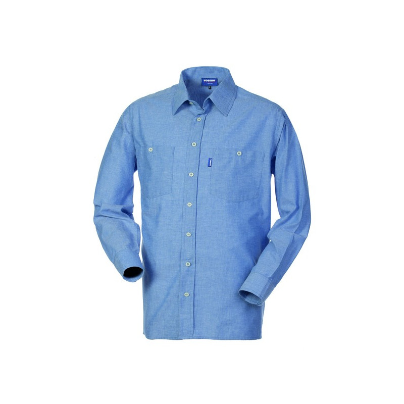 Camicia con chiusura centrale con bottoni, manica lunga con polsi chiusi con bottone. Due taschini applicati al petto chiusi con bottone.
