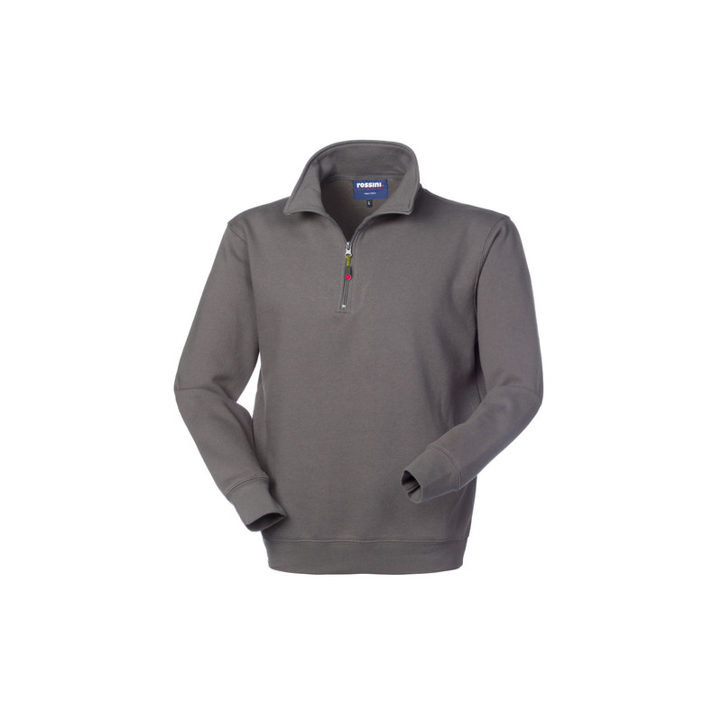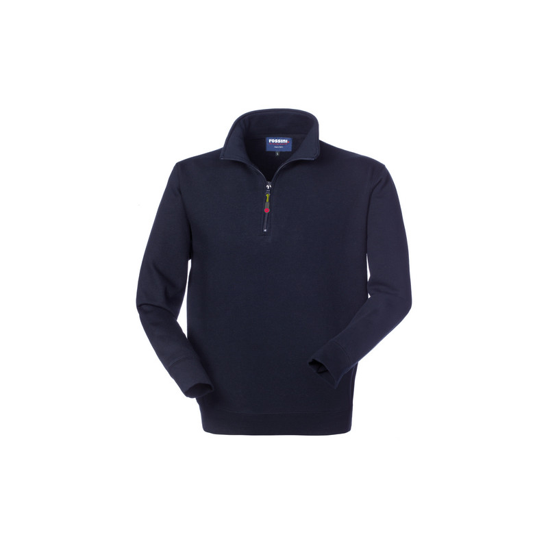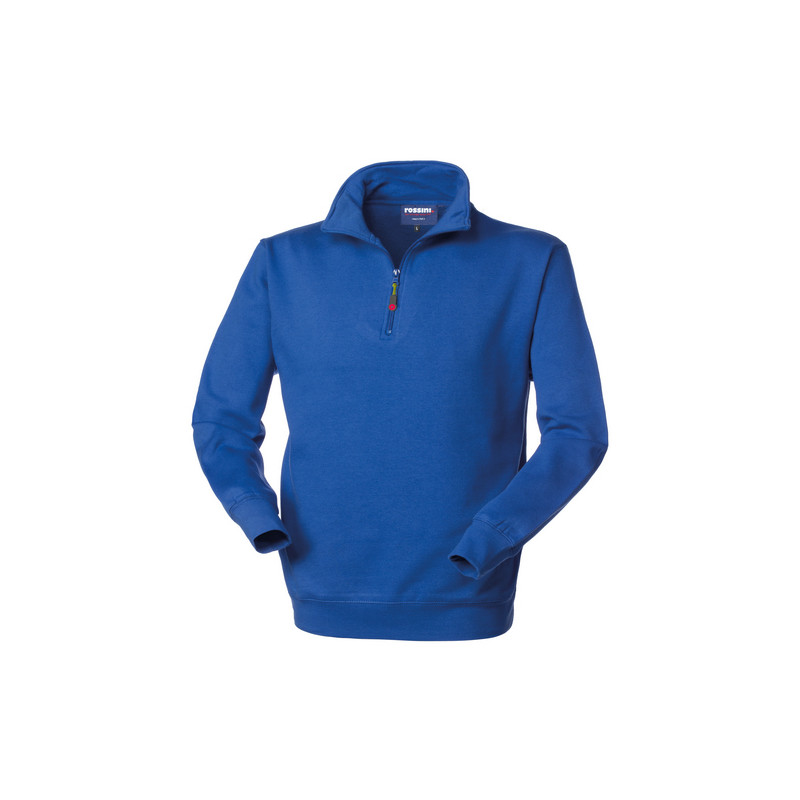 Felpa con collo alto chiuso con cerniera (in metallo solo per il colore bianco), parasudore interno al collo, polsi e fascia girovita in maglia elastica, tira zip fluo. *** XS solo per 01 blu e 02 bianco ***