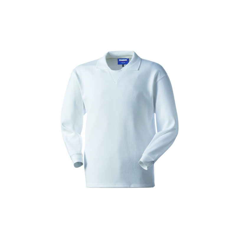 Felpa con collo a polo con inserto triangolare in maglia elastica, parasudore interno al collo, polsi in maglia elastica, giromaniche e fondo dritto.