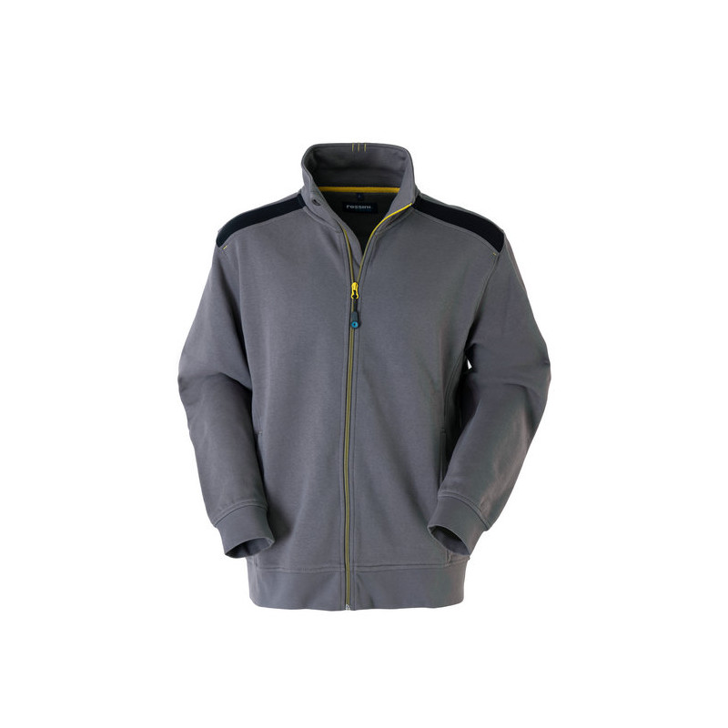 Collo alto per maggiore protezione. Fascia parasudore interna al collo. Polsi e fascia girovita in costina elastica. Tasche a filetto. Travette di rinforzo.
