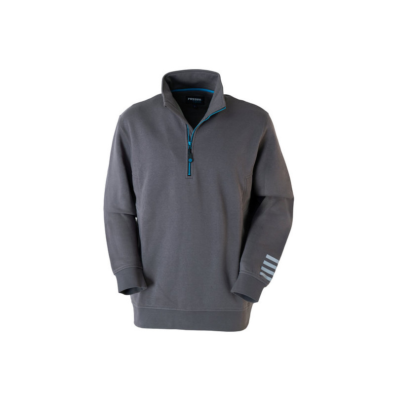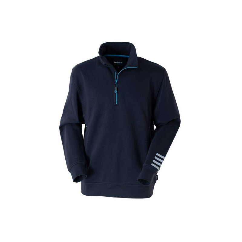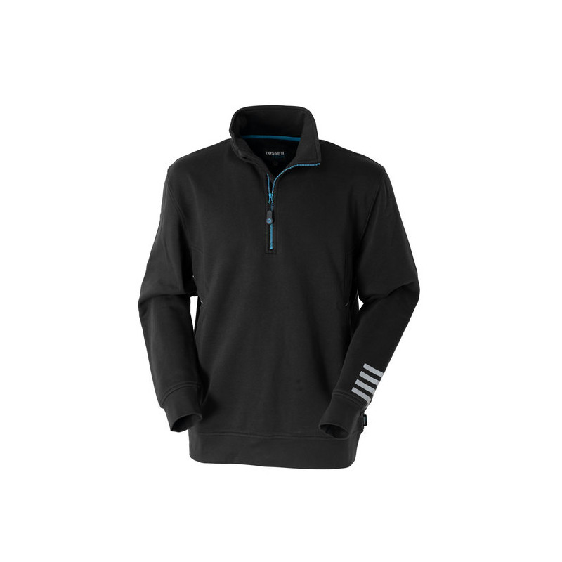 Collo alto per maggiore protezione. Fascia parasudore interna al collo. Polsi e fascia girovita in costina elastica. Tasche ai fianchi con zip invisibile. Dettagli rifrangenti. Travette di rinforzo.