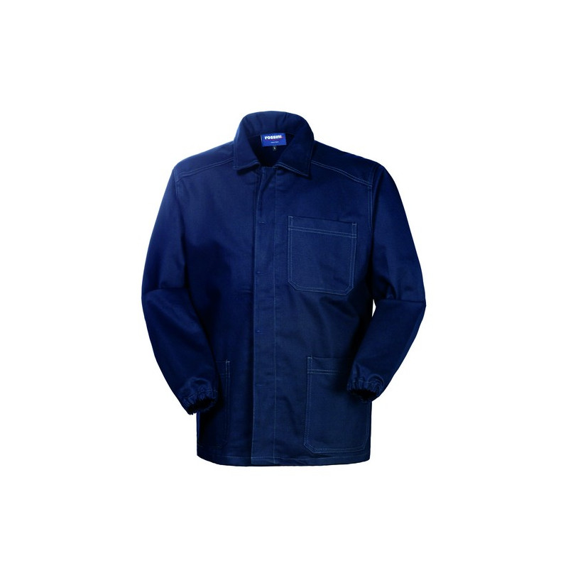 Visualizza ingrandito Giacca da lavoro con chiusura anteriore con bottoni coperti. Un taschino applicato al petto sinistro, due tasche inferiori applicate, elastico ai polsi, cuciture a contrasto di colore grigio.