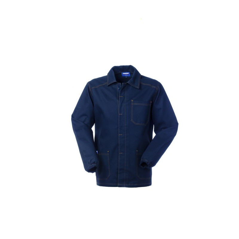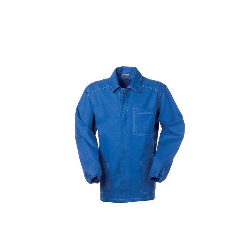 Giacca da lavoro con chiusura anteriore con bottoni coperti. Un taschino al petto e due tasche inferiori. Polsi con elastico, cuciture di colore a contrasto. *** TAGLIA 4XL DISPONIBILE SOLO PER IL COLORE 01 BLU ***