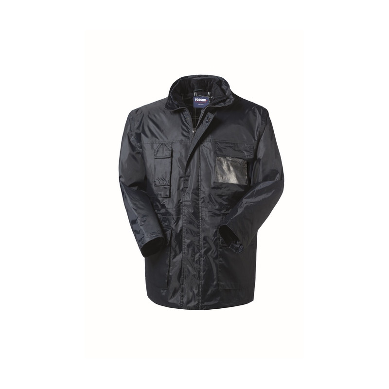 Visualizza ingrandito Parka imbottito con chiusura con cerniera coperta da patta chiusa con bottoni automatici nascosti, cappuccio inserito nel collo chiuso con cerniera, fori di aerazione sotto le ascelle. Un taschino a soffietto applicato sul petto destro chiuso con velcro, un portabadge in PVC removibile, un taschino lato destro chiuso con cerniera verticale, un taschino a soffietto anteriore applicato chiuso con aletta e bottoni automatici ascosti, due tasche a soffietto applicate chiuse con aletta e bottoni automatici nascosti, cordino stringivita. GIUBBOTTO INTERNO: chiusura con bottoni automatici, trapuntato e imbottito con fodera interna in flanella di colore blu a quadretti bianchi, maniche staccabili, colletto in velluto, polsi in maglina elastica, due tasche applicate chiuse con aletta e velcro e taschino a soffietto al petto destro chiuso con velcro, spacchetti al fondo con bottoni automatici.