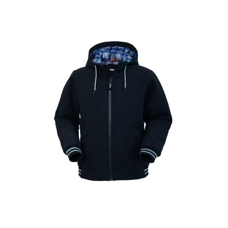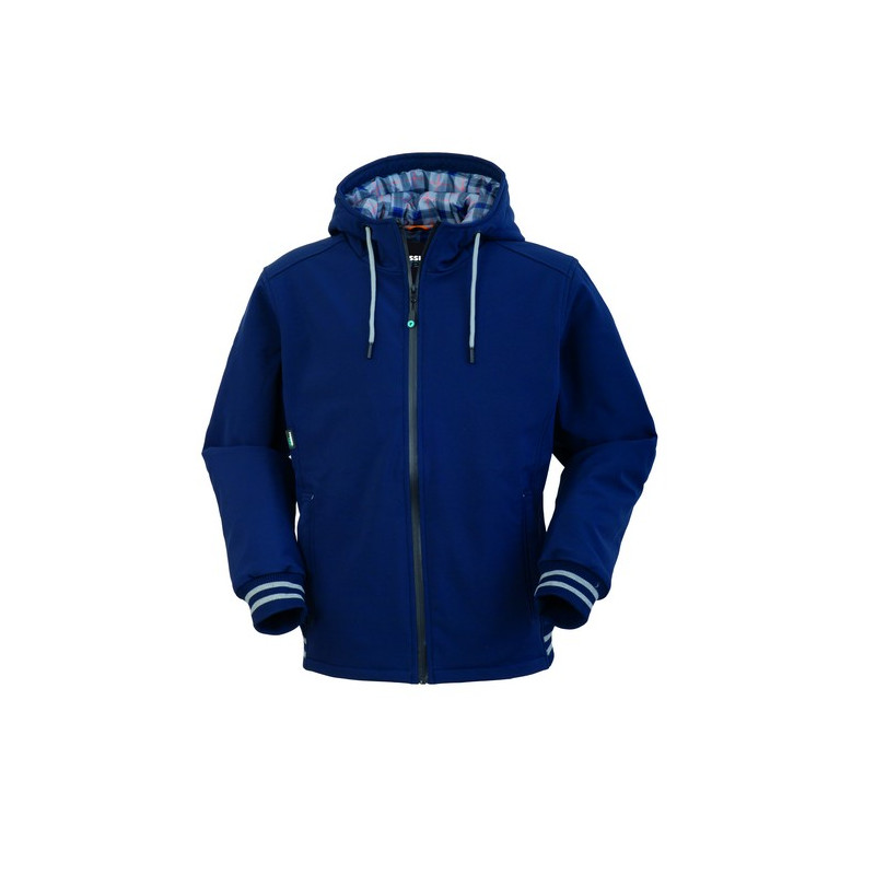 Giubbotto invernale imbottito in Softshell a 3 strati con chiusura anteriore con zip centrale antipioggia, cappuccio fisso con coulisse, inserto rifrangente sotto il cappuccio. Un taschino interno a destra sotto zip, due tasche inferiori a filetto chiuse con zip, polsi e fascia in vita in maglia elastica e fori di aerazione sotto le ascelle. 8000 mm WP
