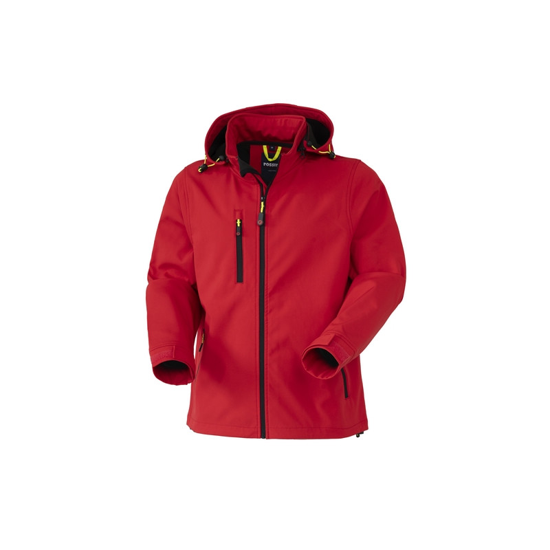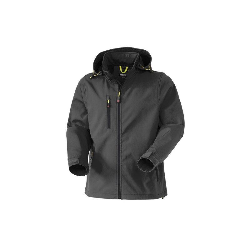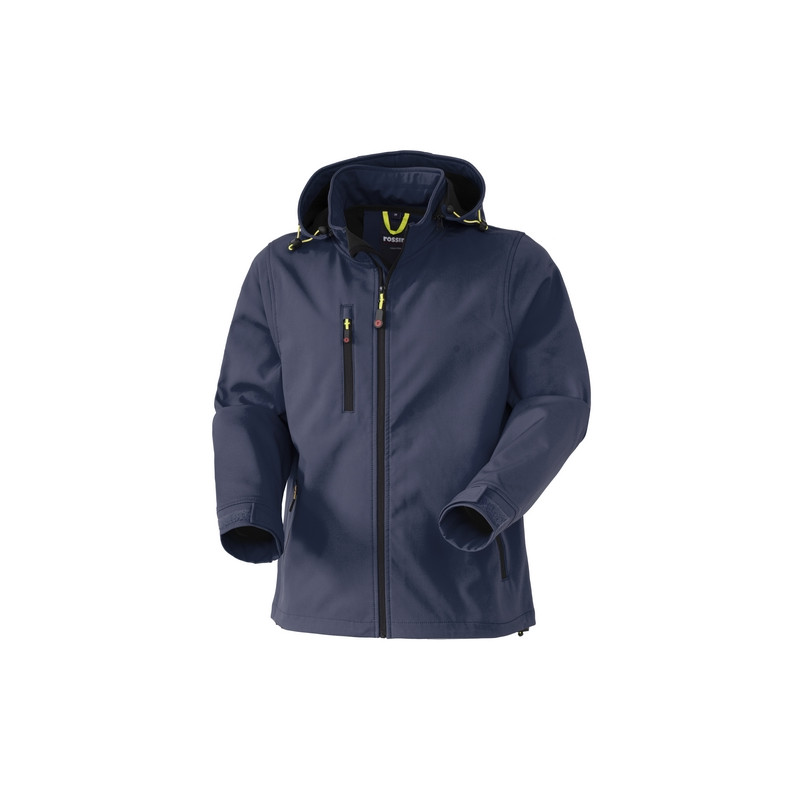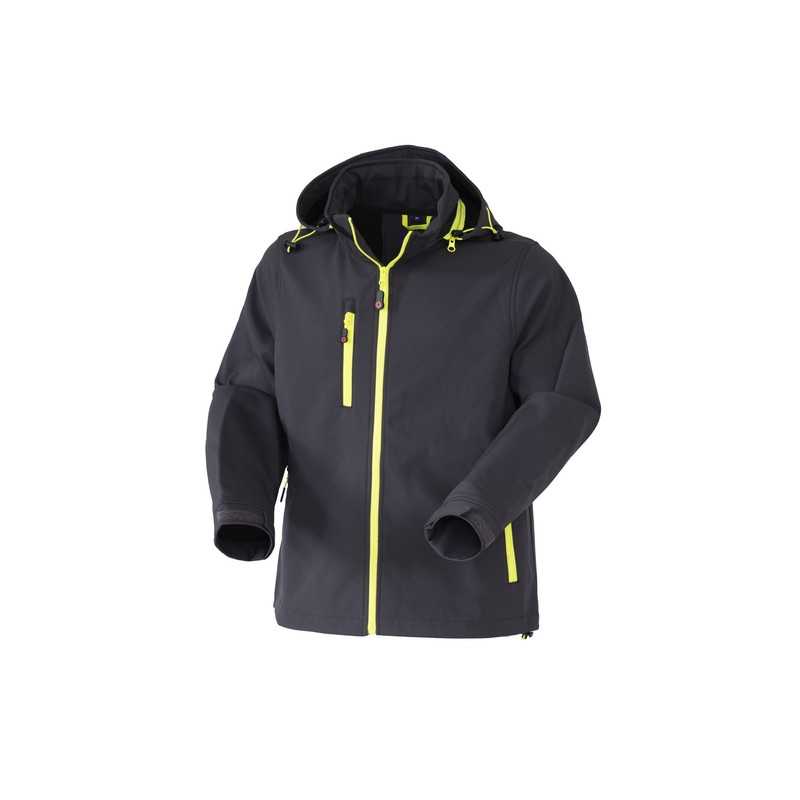 Giubbotto realizzato in tessuto Softshell a due strati, chiusura anteriore con zip, cappuccio con coulisse e staccabile con zip. Un taschino a filetto al petto destro chiuso con zip verticale, due tasche inferiori a filetto chiuse con zip, polsi regolabili con velcro, dettagli di colore in contrasto. 6000 mm WP/ 3000 MVP.