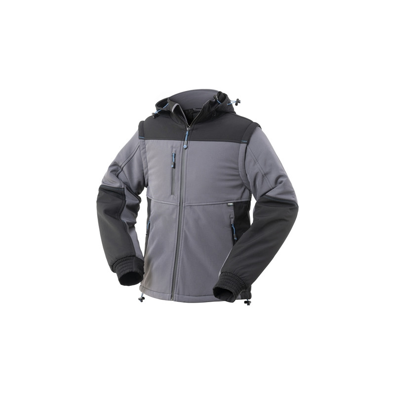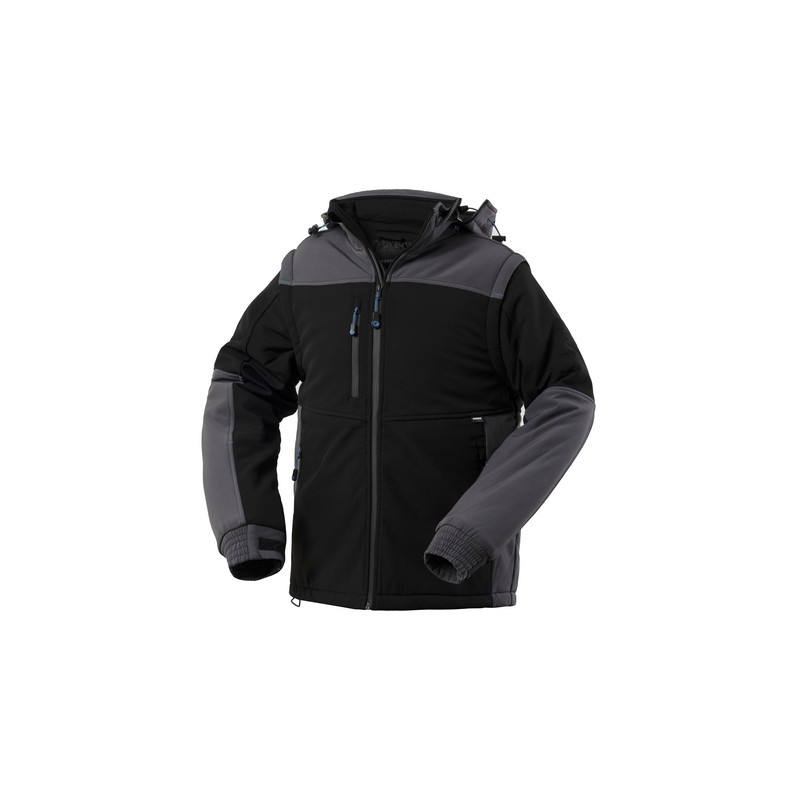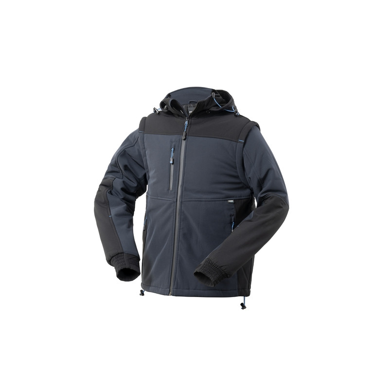 Giubbotto invernale softshell imbottito con chiusura anteriore waterproof YKK. Cappuccio con coulisse, removibile con zip YKK. Maniche removibili con zip YKK, un taschino a filetto al petto destro con zip YKK waterproof verticale, due tasche inferiori a filetto chiuse con zip YKK waterproof, polsino con elastico regolabile con velcro, zip YKK interna posteriore per una facile personalizzazione, tasca multifunzionale interna con chiusura a zip YKK. 6000 mm WP / 3000 MVP. ***5XL solo per 01 blu***