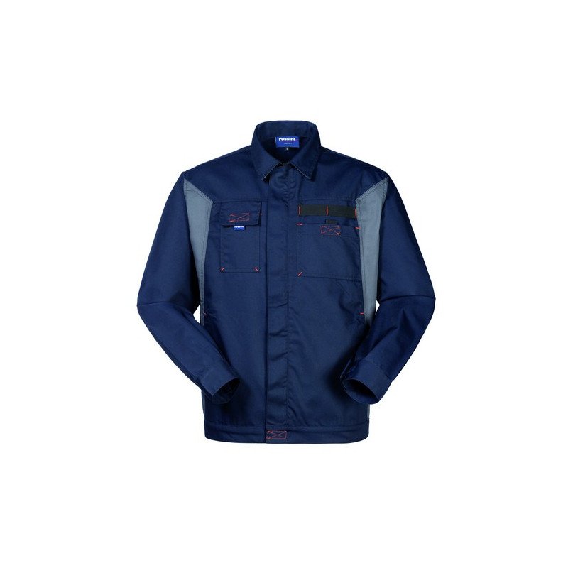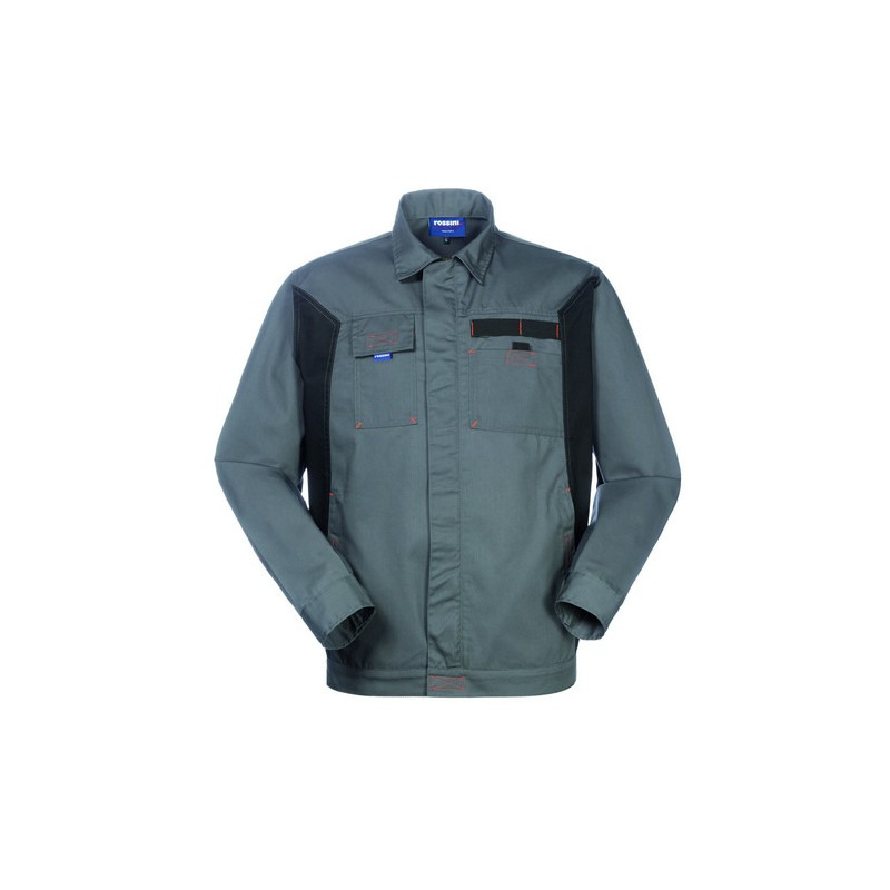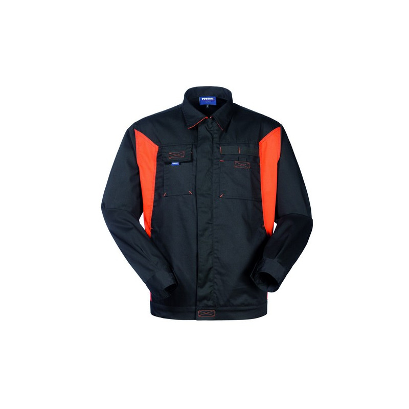 Giubbetto da lavoro con chiusura anteriore con cerniera coperta. Una tasca chiusa con velcro applicata al petto sinistro, un portacellulare chiuso con aletta e velcro applicato al petto destro, due tasche inferiori interne chiuse con velcro. Polsi chiusi con velcro, inserti e travette di colore a contrasto.