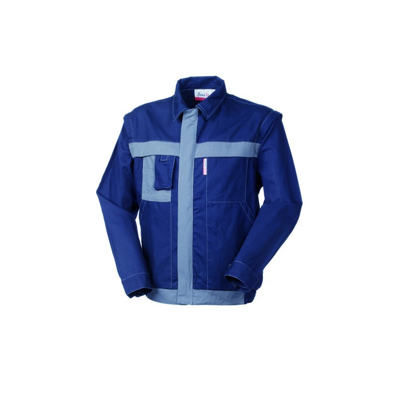 Visualizza ingrandito Giubbetto da lavoro con chiusura con cerniera centrale coperta, maniche staccabili con cerniera, polsino al fondo manica chiuso con velcro regolabile, cintura al giro vita con elastico ai fianchi. Due tasche applicate al petto di cui la destra con portapenne e porta telefono a soffietto, asola per il passaggio dell’auricolare per il telefono, due tasconi applicati con apertura obliqua, strisce orizzontali anteriori e posteriori, patella copricerniera. Sotto collo e parte della cintura posteriore e anteriore in tessuto di colore a contrasto, cuciture con filo di colore in contrasto.