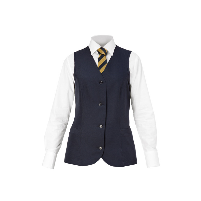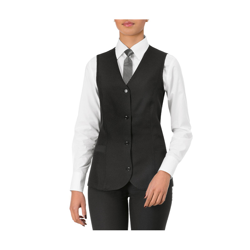 270BX Il Gilet Rosita, dallo stile classico e taglio Regular Fit, è perfetto per ambienti come reception e sala. Realizzato in poliestere di media grammatura e valorizzato dalla tecnologia indantrene, offre una resistenza eccellente ai lavaggi ad alte temperature. Il design monopetto con scollo a V, 4 bottoni in tinta e due tasche funzionali unisce praticità ed eleganza. Disponibile in nero, blu e bordeaux.