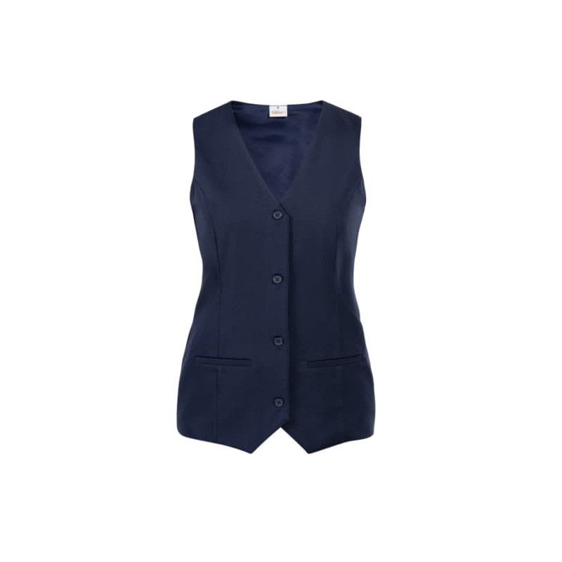 26P01E270 Sabrina è la versione femminile del gilet Fabiano, pensato per scuole e istituti alberghieri, perfetto per ambienti come reception e sala. Realizzato in poliestere elasticizzato di media grammatura e offre un’elevata resistenza ai lavaggi ad alte temperature. Il design monopetto con scollo a V, quattro bottoni in pasta in tinta e due tasche funzionali coniuga praticità ed eleganza. Caratterizzato da uno stile classico e da una vestibilità Slim Fit, è disponibile nei colori nero e blu e si distingue per l’ottimo rapporto qualità-prezzo.