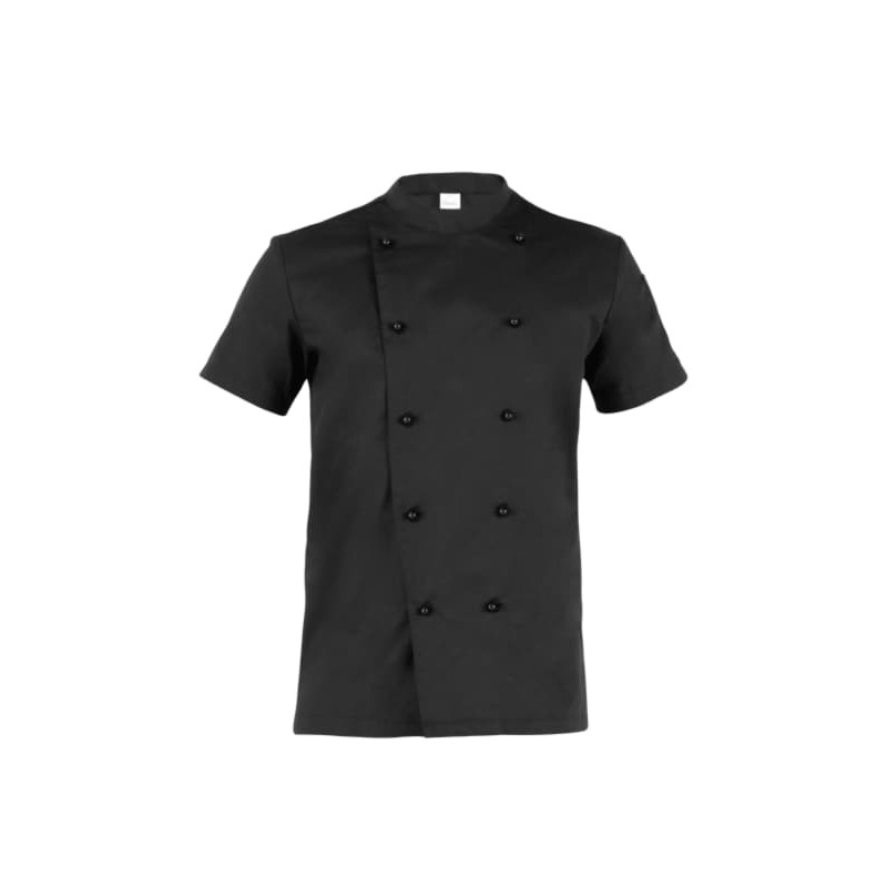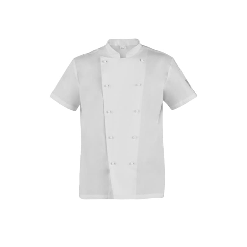 La giacca da cuoco Tommaso a manica corta presenta l’abbottonatura doppio petto, il collo arrotondato, e un porta penne sulla manica sinistra. Presenta una vestibilità Slim Fit e si caratterizza per i bottoni estraibili che predominano sulla pettorina davanti. La giacca è realizzata in tessuto 100% cotone nella variante bianca, e nel 65% poliestere 35% cotone nella variante nera. Ha la variante manica lunga nella giacca Adriano.