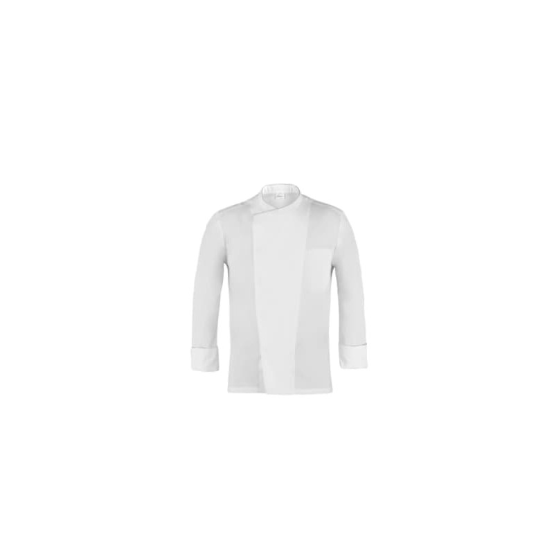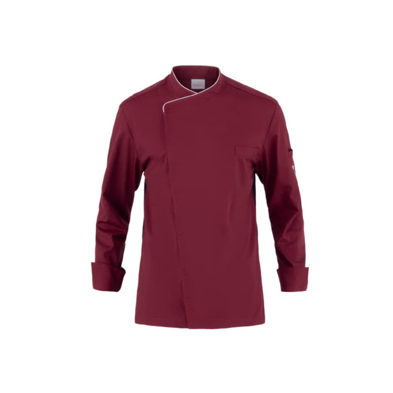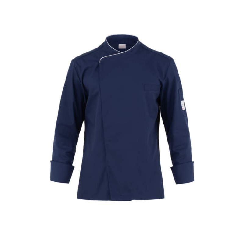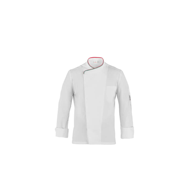 La giacca Patrizio è un capo dall’impronta classica, rivisitato in chiave contemporanea, grazie ai due tagli laterali in maglia di piquet, che sagomano il retro, conferendo alla giacca una vestibilità Slim Fit e assicurando il massimo confort nei movimenti. Il capo presenta il collo alla francese, l’abbottonatura rigorosamente nascosta, il taschino sul petto e il portapenne sulla manica. Nel collo è inserito il classico piping. Patrizio è proposta in bianco con piping grigio perla o tricolore, e in nero, blu e bordeaux con piping grigio perla e ha la sua variante femminile nella giacca Susi.