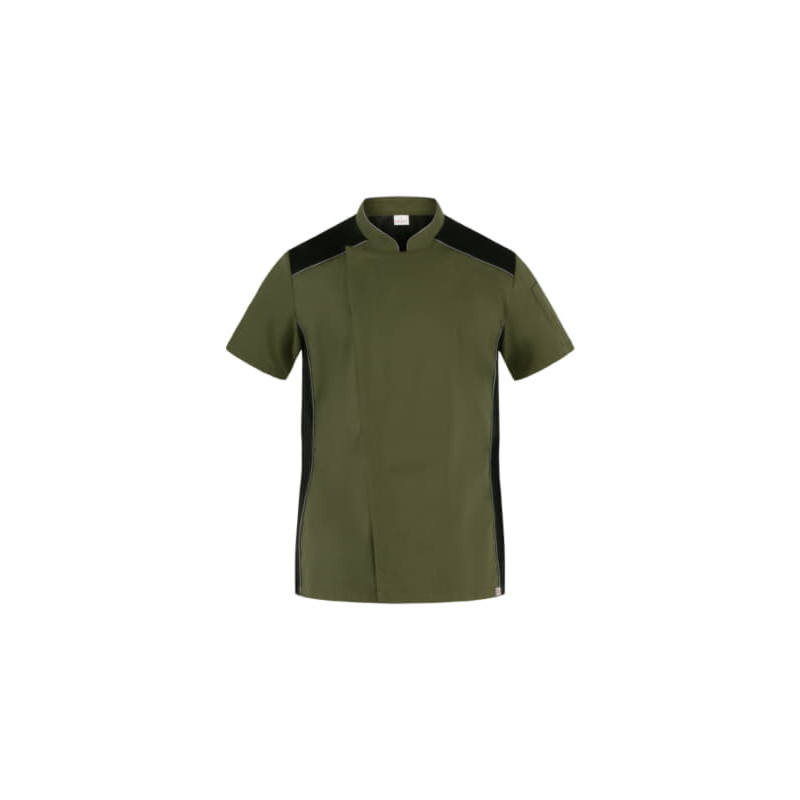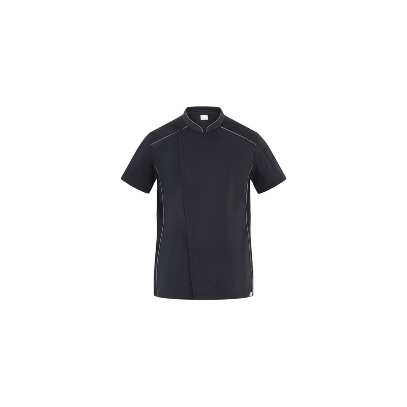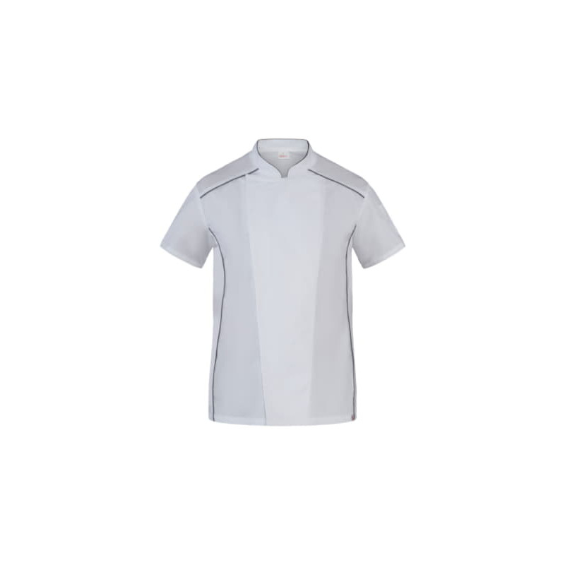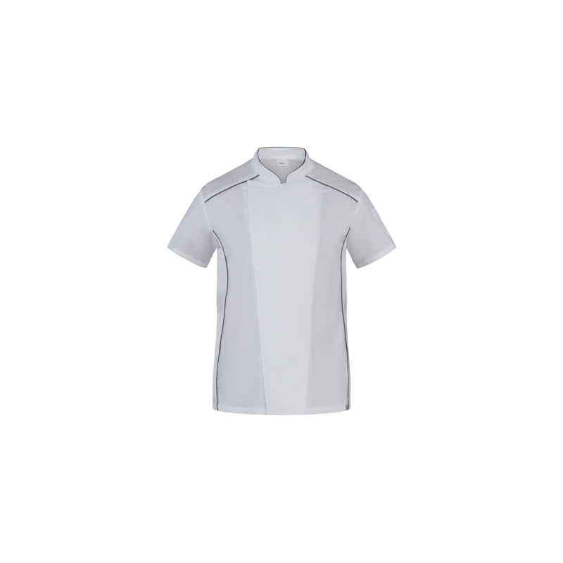 La giacca Omar, che fa parte della collezione Giblor’s “Evergreen”, è caratterizzata da una vestibilità Slim Fit ed è realizzata in tessuto 100% cotone 185 g / m², adatto ai lavaggi alle alte temperature. Il design prevede un collo coreano con abbottonatura nascosta dalla tradizionale punta all’insù e un pratico portapenne sulla manica. Le maniche sono corte e i tagli laterali, sia sul davanti che sulla schiena, sono realizzati in maglia di piqué di colore bianco, garantendo massimo comfort nei movimenti e ottima traspirabilità. È proposta nel classico colore bianco abbinato a un piping grigio scuro inserito nel collo, nei fianchi davanti e negli spalloni.
