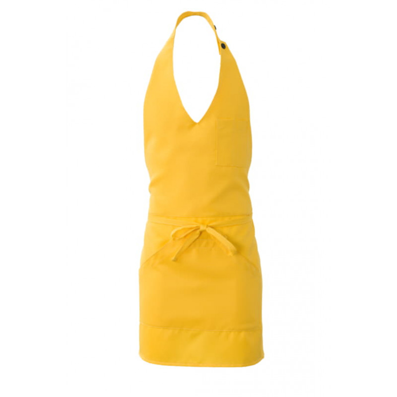 Il grembiule Lipari presenta uno scollo a V con laccio al collo regolabile attraverso un bottone 4 fori. È caratterizzato da un’ampia tasca centrale, e da lunghi lacci annodabili anche sul davanti. Il tessuto è resistente alle alte temperature ed è candeggiabile.