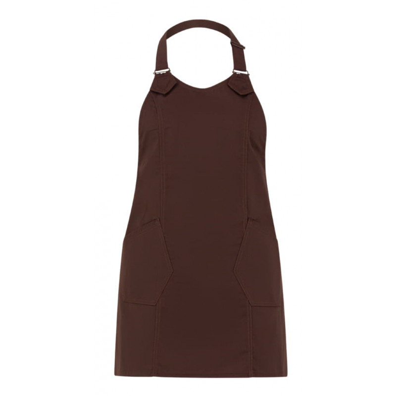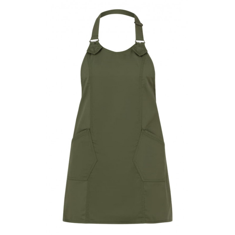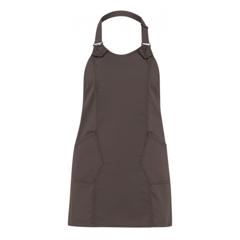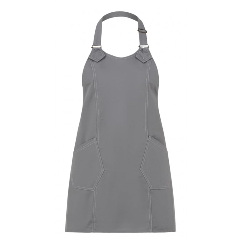 Il grembiule Virginia è realizzato in gabardina classica in poli-cotone, ha un gusto lineare ma di grande impatto, contraddistinto dalle linee geometriche, rimarcate da impunture a due aghi con filato a contrasto. Presenta due tasche, fissate con travette in tono- il laccio del collo è regolabile attraverso due fibbie. Il grembiule Virginia è proposto in sette varianti: nero, blu, grigio, tortora, bordeaux, verde militare e marrone.65% poliestere 35% cotone 200 g/m²