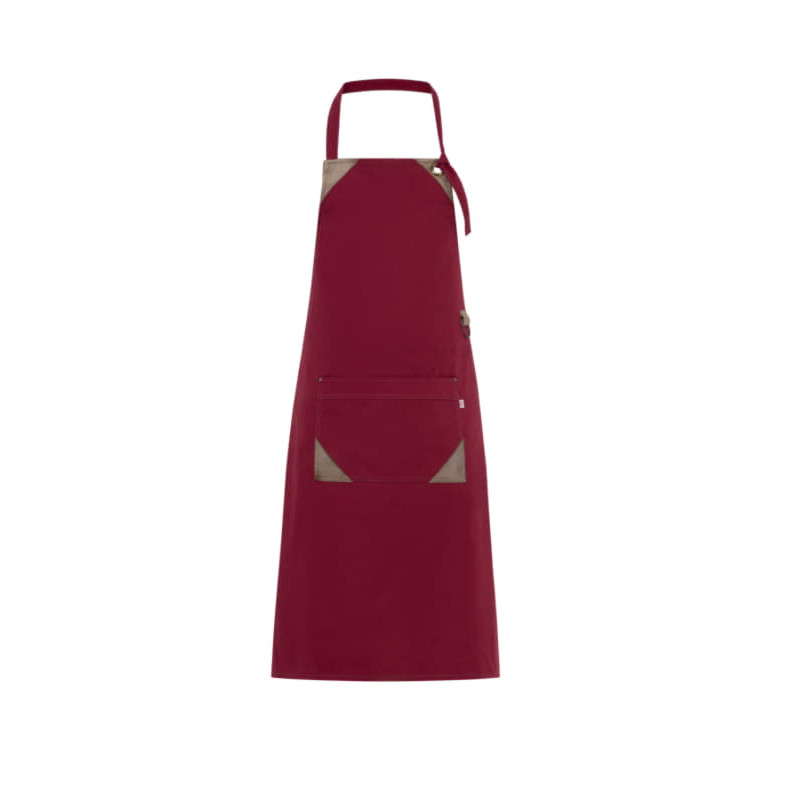 Il grembiule Karpathos è un modello unisex, realizzato in gabardine, composta al 65% di poliestere e al 35% di cotone, con un peso di 200 g / m², ideale per i lavaggi ad alte temperature. Dotato di una pettorina di ampie dimensioni, il grembiule presenta un laccio del collo regolabile attraverso un anello in ottone anticato. Un’ampia tasca centrale rivettata e un porta torcione completano il capo. Quattro apici in alcantara decorano il grembiule, che è interamente rifinito con impunture a contrasto. Disponibile nelle colorazioni: verde militare, bordeaux e nero.