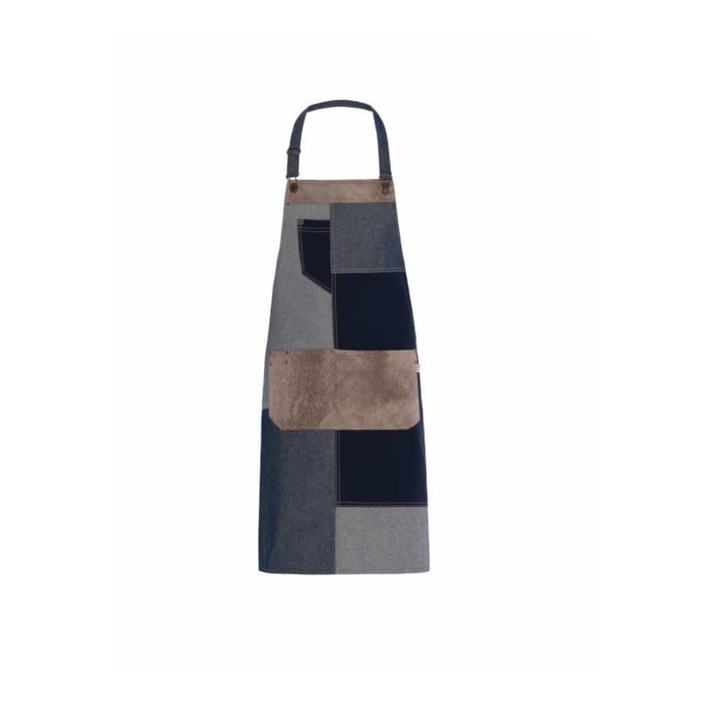 Visualizza ingrandito 19P01H072 Stile sorprendente per questi grembiuli in denim patchwork blue, sia nella versione uomo che in quella donna. Il tessuto denim usato al rovescio, abbinato a inserti e tasche in alcantara, gli conferiscono un aspetto autentico e contemporaneo. Le cuciture a contrasto e la metalleria in ottone invecchiato illuminano e rendono il capo davvero ricercato. Tipica l’allacciatura salopette con tracolla regolabile.