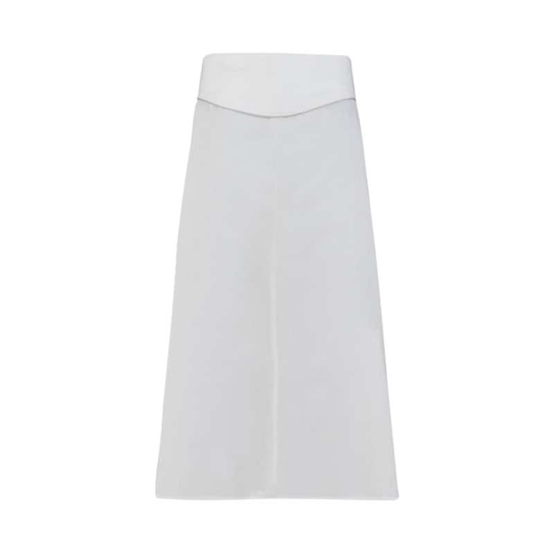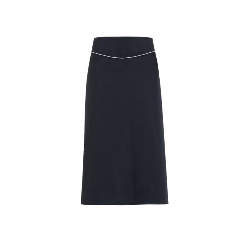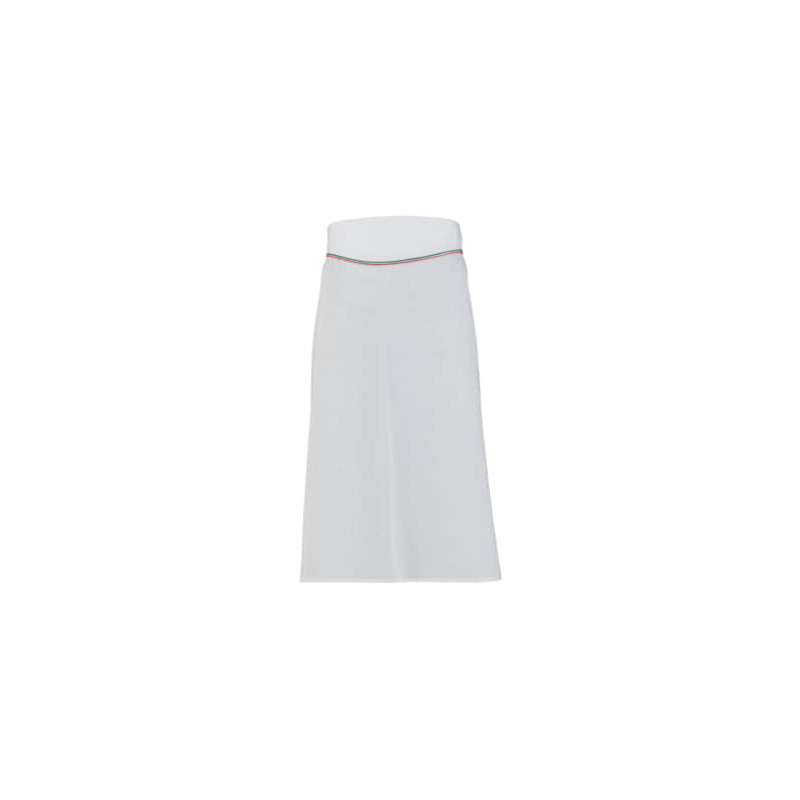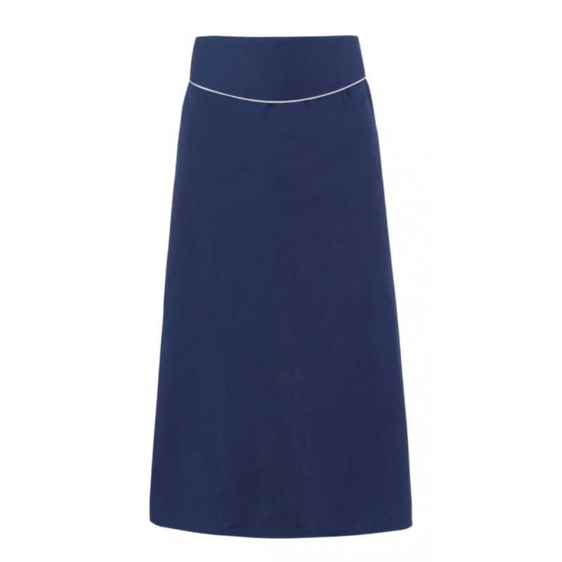 Il grembiule Giunone presenta ampie dimensioni, il caratteristico piping a contrasto, e una baschina dalla forma sinuosa. Le varianti proposte sono bianca con piping grigio perla, nera blu e bordeaux con piping grigio perla, bianca con piping tricolore.
