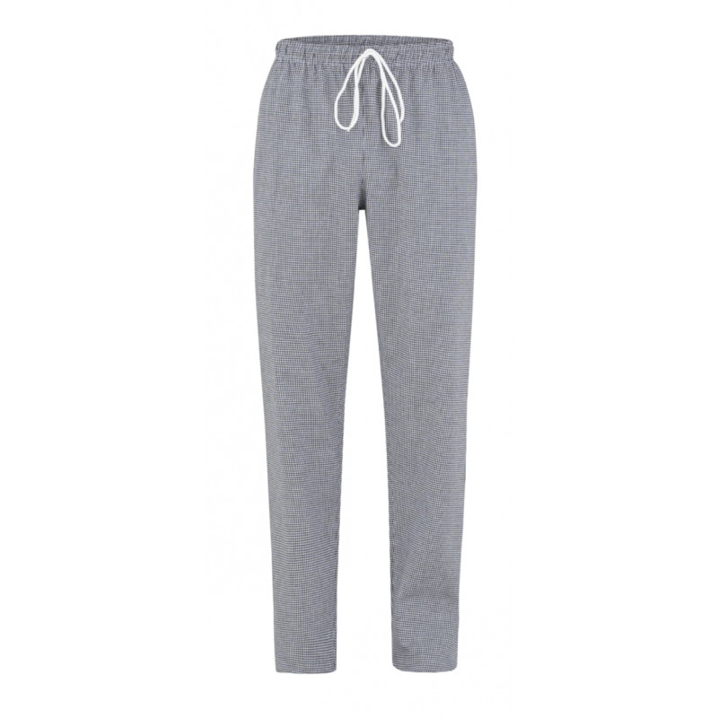 Il pantalone Plutone presenta tasche laterali alla francese, una tasca nel retro e una coulisse in tinta con i puntelli plastificati. É realizzato in gabardina 100% cotone nel bianco, in 65% poliestere 35% cotone nel nero, e in cotone 200 g / m² nella variante a quadri bianchi e neri.