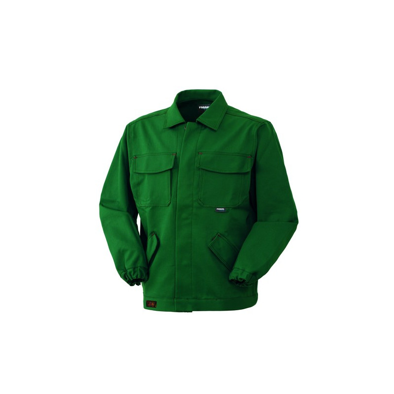 Giubbetto da lavoro con chiusura anteriore con bottoni automatici coperti, carré posteriore. Due taschini applicati al petto chiusi con aletta e velcro, due tasche inferiori a filetto con apertura obliqua chiuse con aletta e velcro e polsi al fondo manica con elastico. Etichetta jacquard con pittogrammi cucita e travette varie di colore rosso.