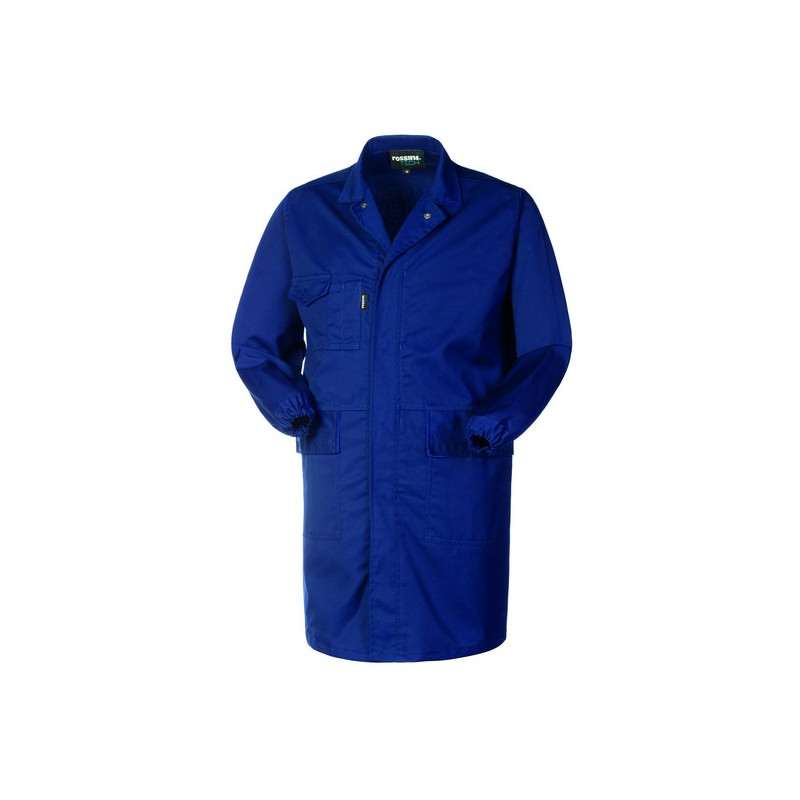 Camice da uomo con chiusura con bottoni automatici coperti. Un taschino al petto destro con portapenne chiuso con aletta e velcro, due tasche applicate chiuse con aletta e velcro. Elastico al fondo manica.
