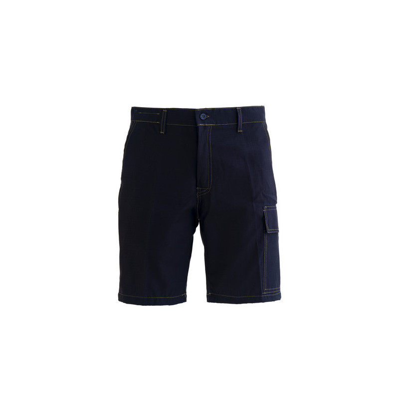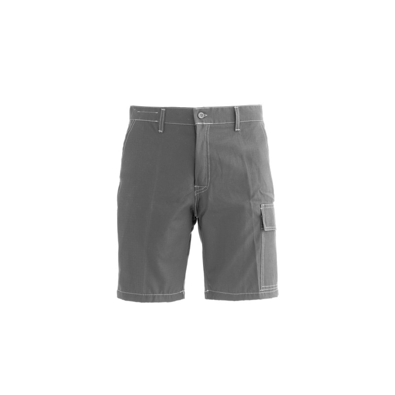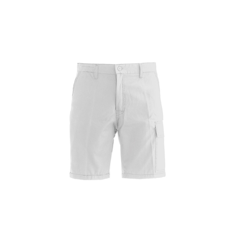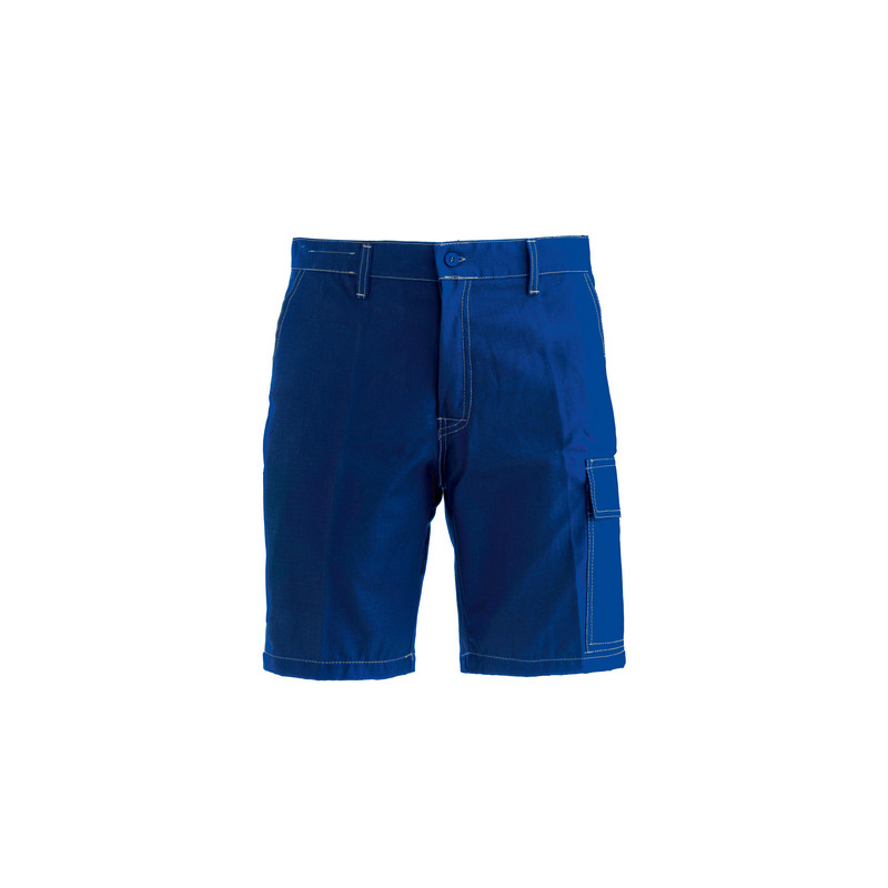 Bermuda da lavoro in cotone leggero ed antistrappo, con passanti in vita ed elastico posteriore, chiusura alla patta con cerniera e bottone scoperto, due tasche anteriori, una tasca posteriore applicata a destra chiusa con bottone, un porta metro applicato su gamba destra, un portapenne e un tascone laterale chiuso con aletta e velcro applicati sulla gamba sinistra, cuciture di colore a contrasto. ***4XL e 5XL solo per 01 blu e 12 grigio***100% cotone Ripstop Peso 210 g/m²