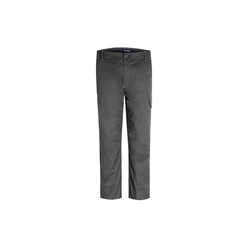 Pantalone da lavoro in cotone elasticizzato, con passanti in vita ed elastico ai fianchi, chiusura alla patta con zip e bottone scoperto. Due tasche anteriori, due tasche posteriori di cui una chiusa con aletta e velcro, un porta metro applicato su gamba destra, un tascone laterale chiuso con aletta e velcro applicato sulla gamba sinistra, cuciture di rinforzo di colore a contrasto. *** 5XL solo per 01 blu ***