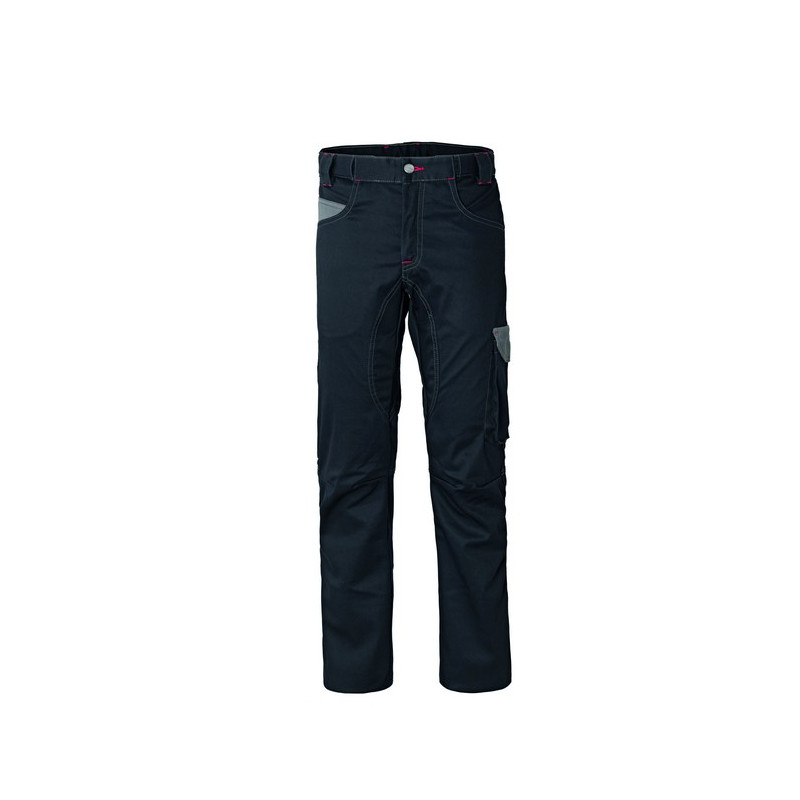 Pantalone da lavoro multistagione, esclusivo elastico in vita, tessuto di rinforzo sul cavallo con tripla cucitura, chiusura alla patta con cerniera e bottone in cintura. Passanti rinforzati e travette a contrasto. Una tasca laterale con soffietto chiusa con aletta e velcro a sinistra, due tasche posteriori applicate chiuse con aletta e velcro, una tasca laterale multifunzione a destra, due tasche anteriori interne, taschino anteriore a contrasto e inserto laterale porta utensili, pences al ginocchio per il massimo comfort. CONFEZIONATO IN SCATOLA SINGOLA