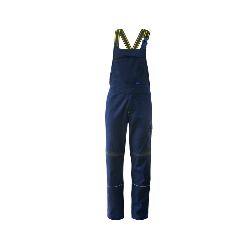 Tessuto elasticizzato, vestibilità ergonomica e confortevole. Bretelle elastiche regolabili con fibbia. Multitasche capienti. Elastico in vita posteriore. Fondo gamba con tessuto extra per regolazione della lunghezza. Dettagli rifrangenti e fluo. Travette e cuciture di rinforzo.