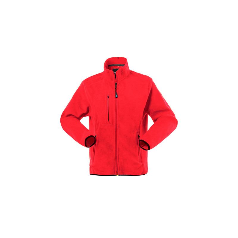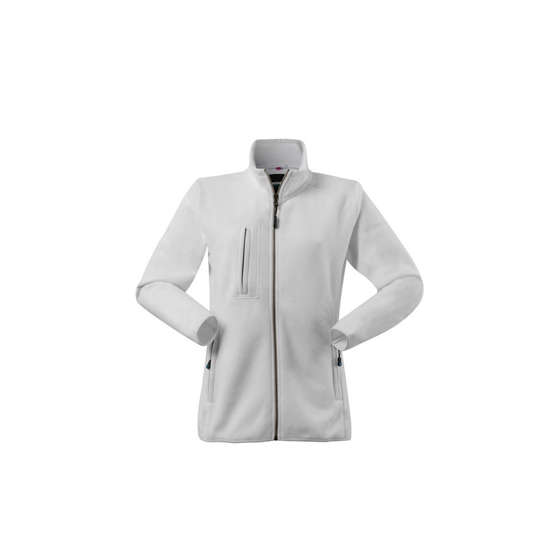 Pile da donna con collo alto con zip centrale (in metallo solo per il colore bianco). Un taschino a filetto al petto destro con chiusura con zip verticale, due tasche inferiori interne chiuse con zip, polsi e girovita con bordo di colore a contrasto, tranne che nei colori 02-bianco e 05-nero.