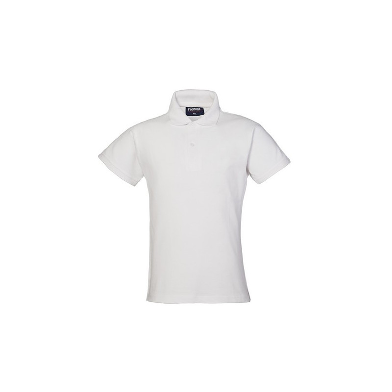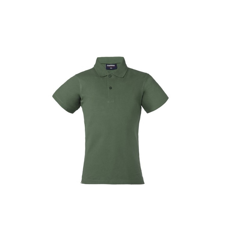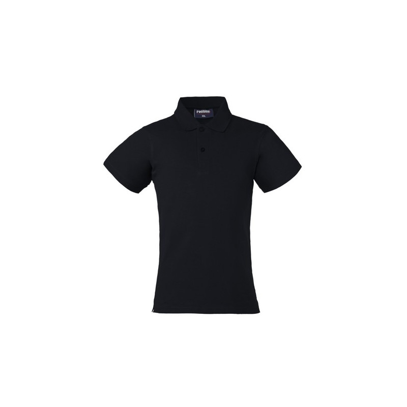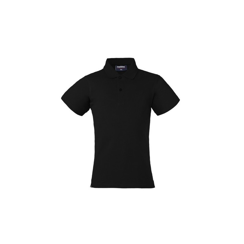 Polo mezza manica da donna con fascia parasudore nella parte posteriore del collo, chiusa con due bottoni, giromanica a costina, ribattitura su spalle e giromanica, spacchetti laterali al fondo.