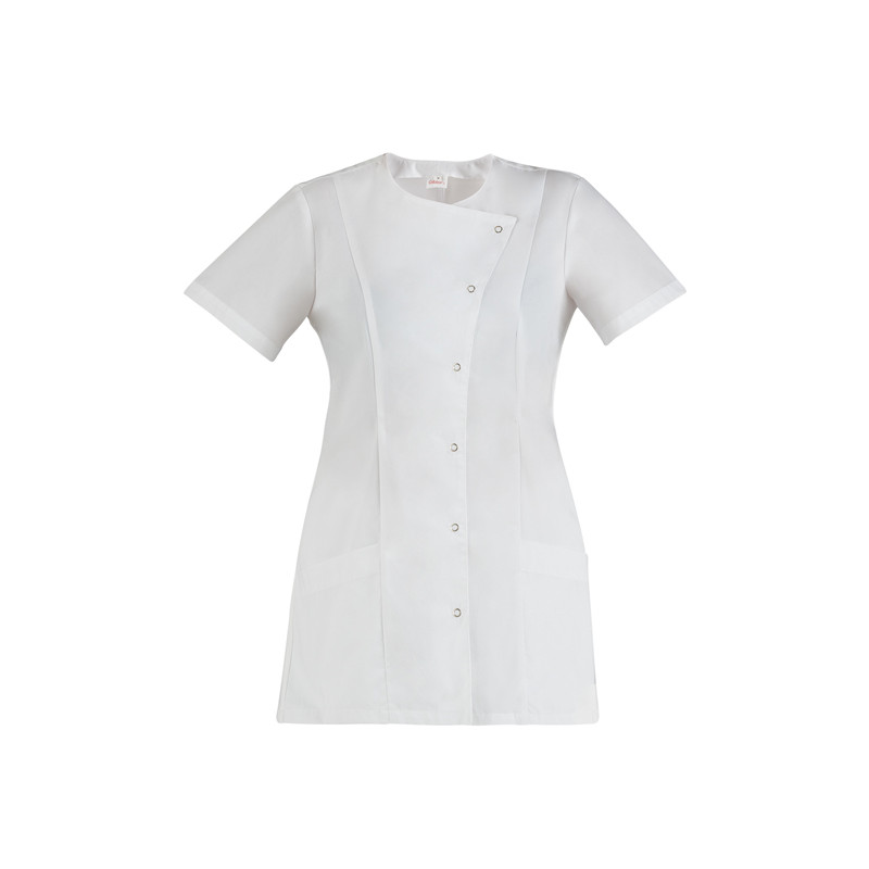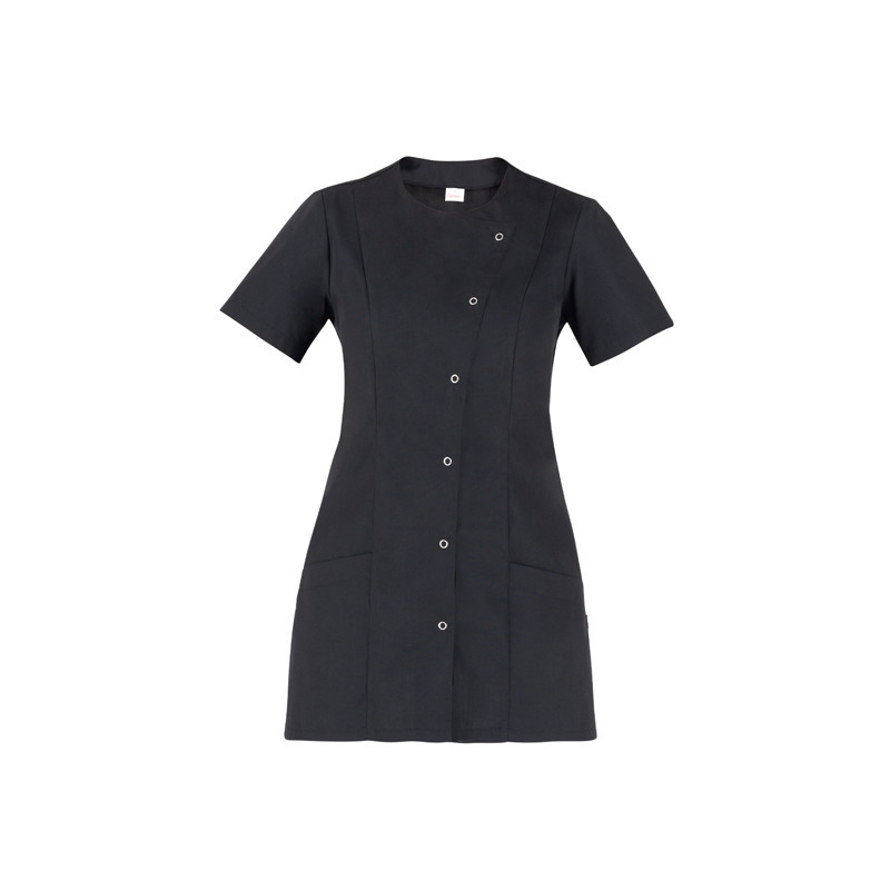 La casacca a maniche corte Elea è realizzata in morbido e freschissimo policotone da 143 g / m², un tessuto di eccellente durata. Presenta una vestibilità Slim Fit, pur garantendo ampia libertà di movimento, grazie ai due fianchetti in rete nella parte posteriore. È caratterizzata da due comode tasche laterali e da due tagli sul davanti e sul dietro che le conferiscono sinuosità, da un’asimmetrica abbottonatura dal taglio geometrico che incornicia il capo e da anelline automatiche in nikel a vista, per dare luce e un tocco di femminilità.