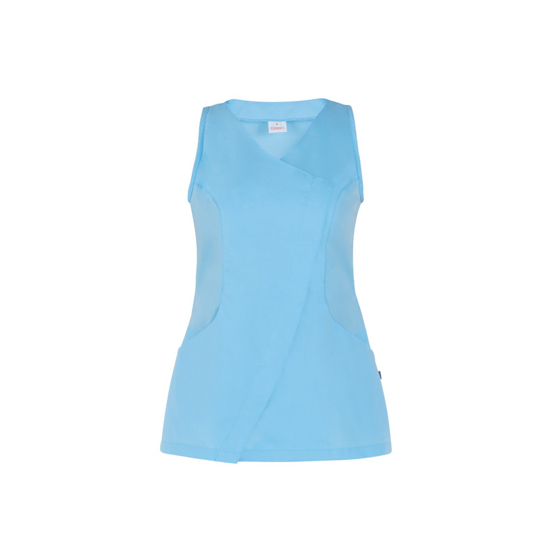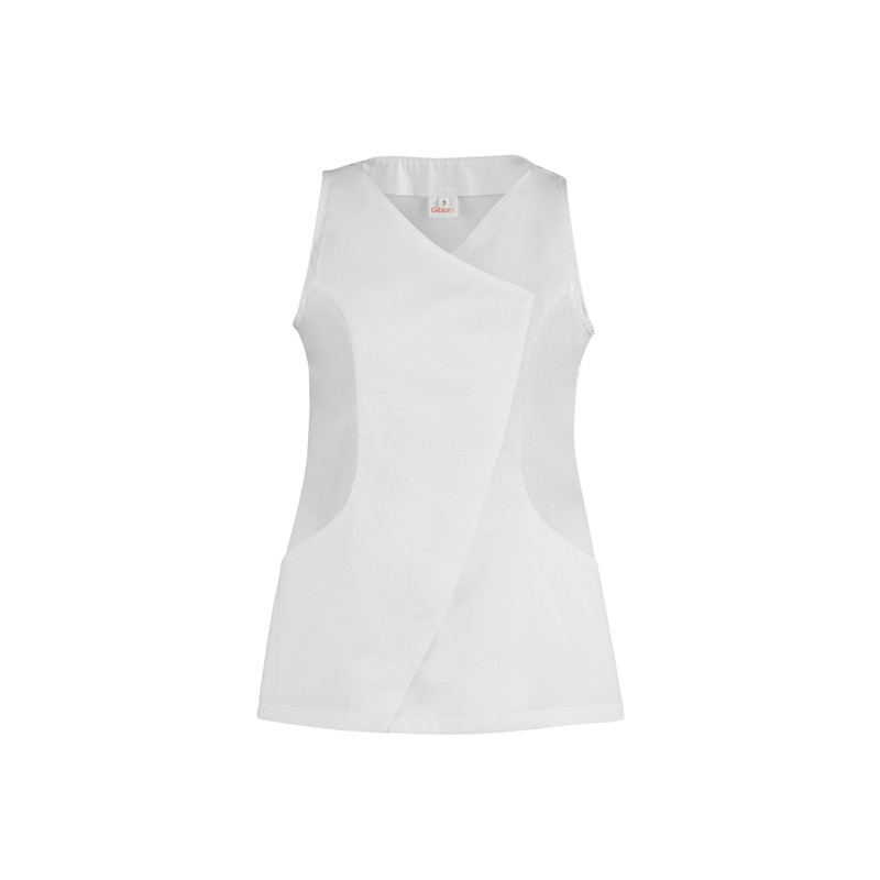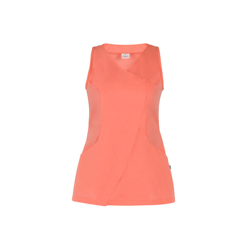 Indossarla e non sentirla! Lo smanicato Sara è realizzato in un freschissimo poliestere cotone 132 g / m², e presenta una vestibilità Slim Fit, accentuata da diversi tagli. È caratterizzata da due tasche dalla forma arrotondata e da un’abbottonatura nascosta dal taglio asimmetrico.