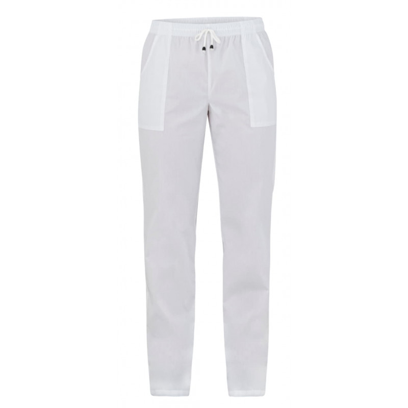 Nuova proposta della Linea Essential, il pantalone Cleopatra presenta la stessa vestibilità Slim Fit del nostro classico Alan, due tasche laterali a sacco, una tasca sul retro ed un elastico con coulisse in tinta alto 4 cm. È realizzato in una fresca tela leggera in poli-cotone, con una grammatura di 143 g /m2, ed è resistente ai lavaggi ad alte temperature, oltre che al candeggio. Cleopatra è proposto in due varianti colore: bianco e nero.