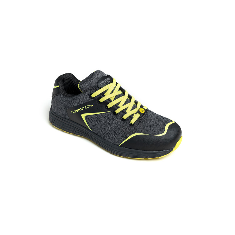 Calzatura bassa dal peso leggero, solo 440 grammi, in esclusivo tessuto alta tenacità traspirante di colore grigio con applicazioni di colore giallo fluo. Fodera interna R-DRY antiodore di colore nero e giallo fluo, linguetta imbottita, puntale in fibra di vetro ultralight, lamina antiperforazione non metallica ultralight, soletta anatomica, traforata, con gel antishock sul tallone che assorbe gli urti, estraibile, traspirante ed antistatica. Suola antiscivolo in Eva Ultralight e battistrada in gomma. CALZATURA METAL FREE Calzata 11 Mondo Point