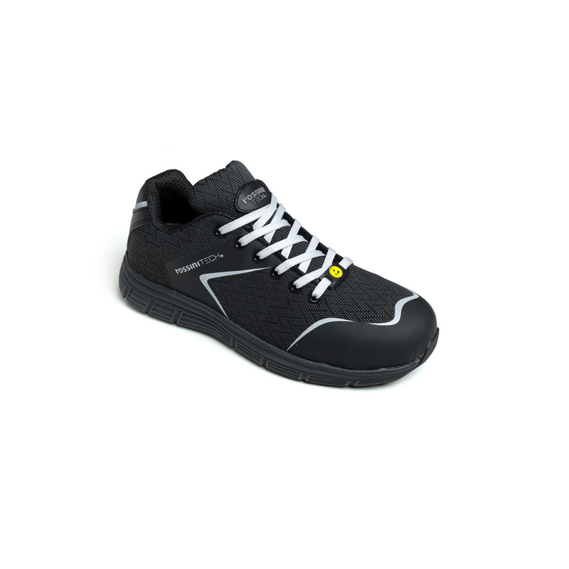 Calzatura bassa dal peso leggero, solo 440 grammi, in esclusivo tessuto alta tenacità idrorepellente di colore nero con applicazioni rifrangenti di colore grigio. Fodera interna R-DRY antiodore di colore nero, linguetta imbottita, puntale in fibra di vetro ultralight, lamina antiperforazione non metallica ultralight, soletta anatomica, traforata, con gel antishock sul tallone che assorbe gli urti, estraibile, traspirante ed antistatica. Suola antiscivolo in Eva Ultralight e battistrada in gomma. CALZATURA METAL FREE Calzata 11 Mondo Point