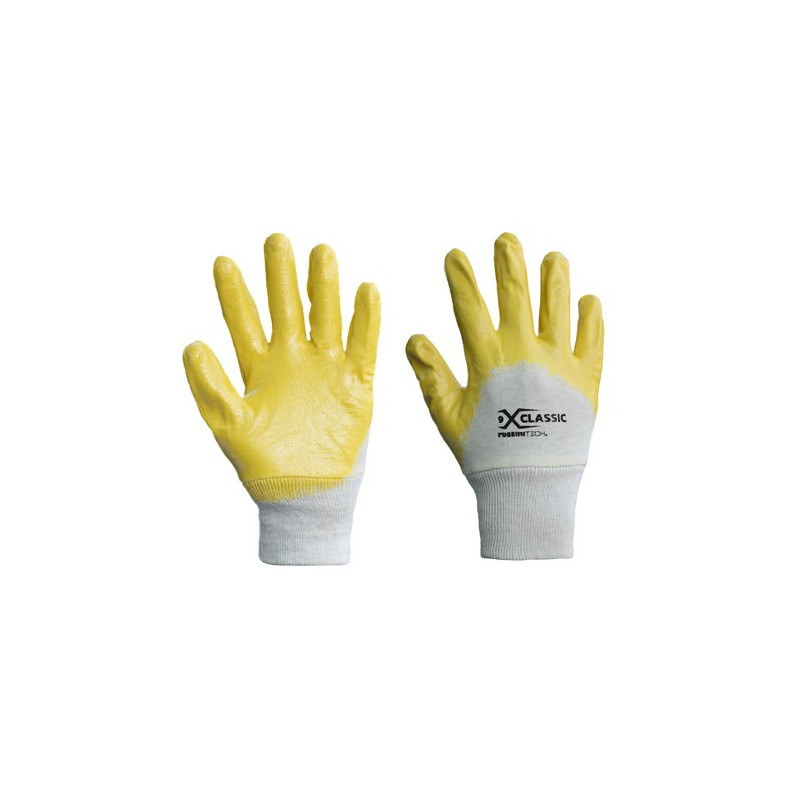 Guanto rivestito per 3/4 di nitrile con finitura liscia, polso a maglia e fodera interna di cotone (interlock). Comfortevole, versatile ed economico. Per applicazioni generali.