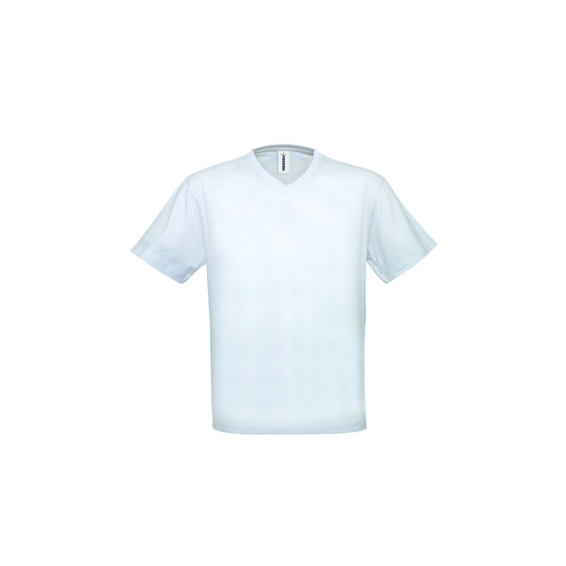 T-Shirt con mezza manica con collo a V, fascia parasudore nella parte posteriore del collo, ribattitura al collo e alle spalle.